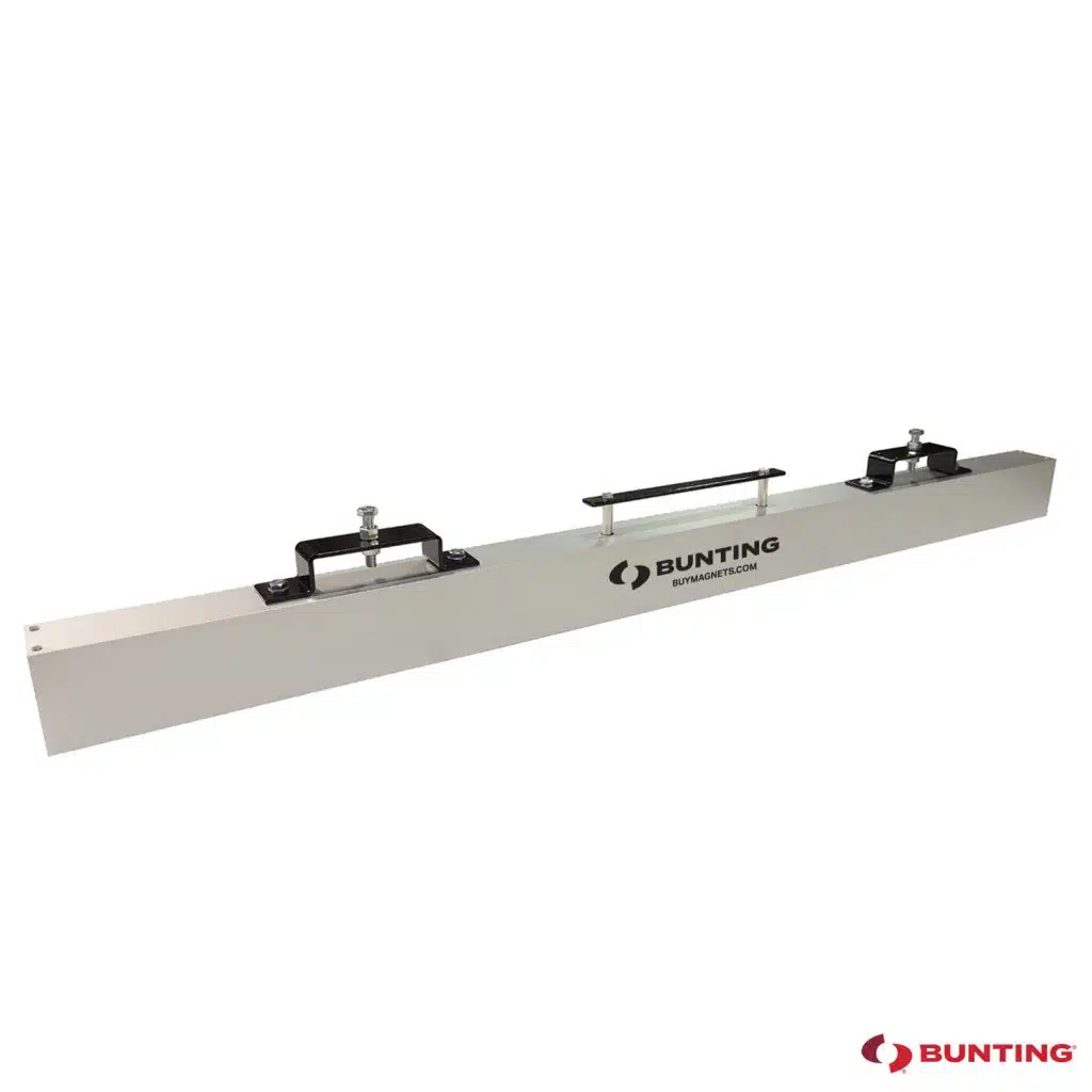 Bunting’s magnetic sweeper bars are a lightweight yet heavy-duty, labor-saving solution to the problem of keeping shop floors, loading docks, parking lots, and construction sites free of damaging ferrous debris. Easy to mount and just as easy to use. These sweeper bars can clamp under forks for use with forklifts or other vehicles. No operating costs, and once the floor is swept, quickly clear debris from the magnetic sweeper with the one-pull release. Lifts ups nails, nuts, screws, tacks and other metal objects from up to 2″ away. Vehicle speeds should be kept as low as practical for effective capture of ferrous parts and debris. Magnetic sweeper bars are available in 36”, 48″, and 60” widths.