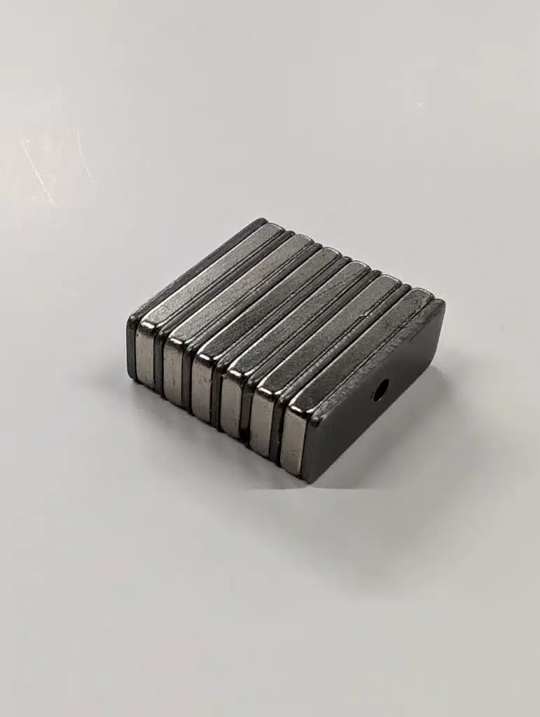 Need a very strong magnet with a small footprint? This Neodymium assembly consists of six Rare Earth Neodymium magnets, arranged between steel plates to offer superior holding force. Neodymium magnets are part of the Rare Earth magnet family and are the most powerful permanent magnets in the world. They are referred to as NdFeB magnets, or NIB, because they are composed of Neodymium (Nd), Iron (Fe) and Boron (B).