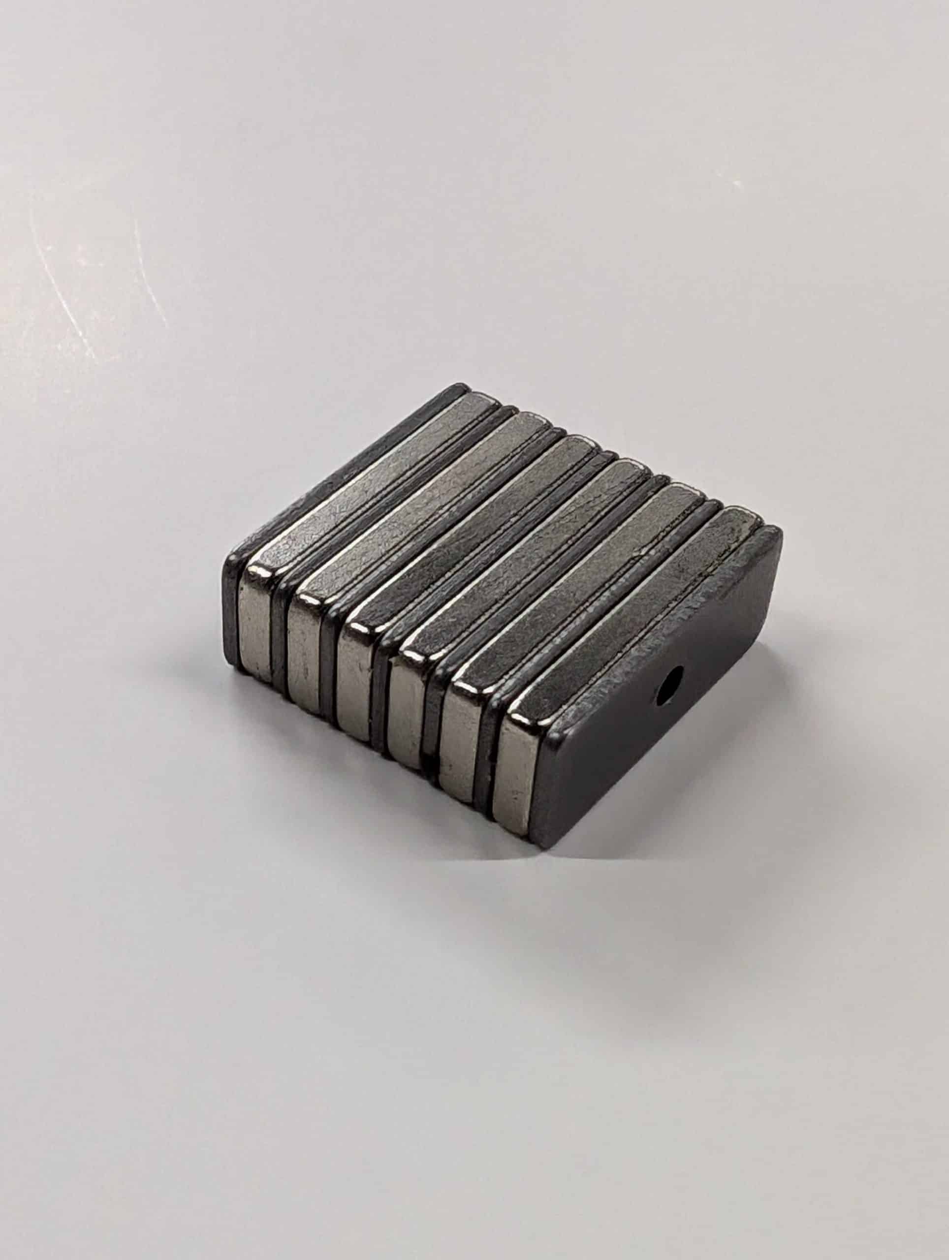 Need a very strong magnet with a small footprint? This Neodymium assembly consists of six Rare Earth Neodymium magnets, arranged between steel plates to offer superior holding force. Neodymium magnets are part of the Rare Earth magnet family and are the most powerful permanent magnets in the world. They are referred to as NdFeB magnets, or NIB, because they are composed of Neodymium (Nd), Iron (Fe) and Boron (B).