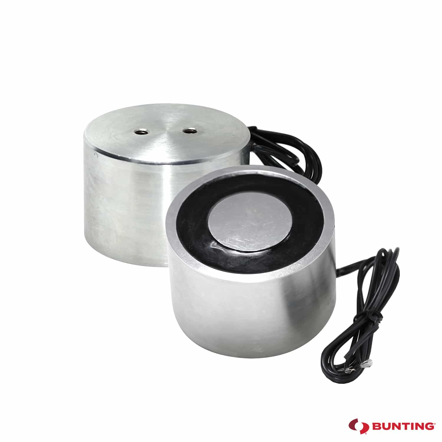 Round flat-faced electromagnets are available in thirteen standard options from BuyMagnets.com. Diameter options range from 0.50” to 6.” Height options range from 0.75” to 3.” The holding force of these electromagnets ranges from 4lbs to 1000lbs. If you have a special request, we also have the ability to supply you with special custom sizes.